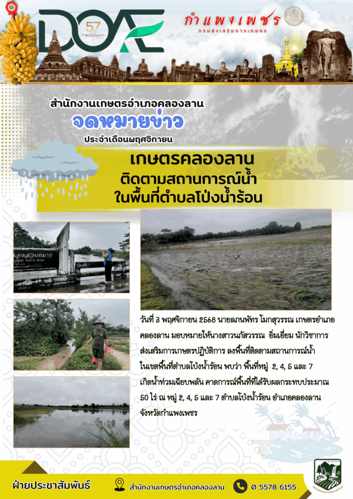 เกษตรคลองลาน: ติดตามสถานการณ์น้ำในพื้นที่ตำบลคลองลานพัฒนา