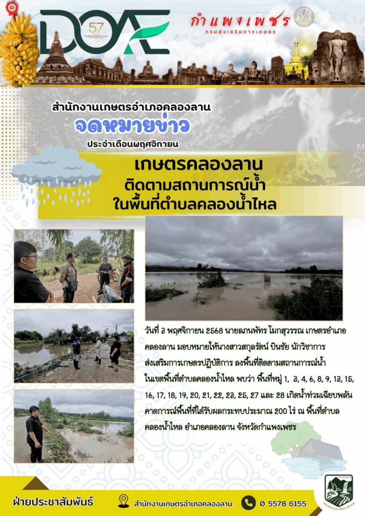 เกษตรคลองลาน: ติดตามสถานการณ์น้ำในพื้นที่ตำบลโป่งน้ำร้อน