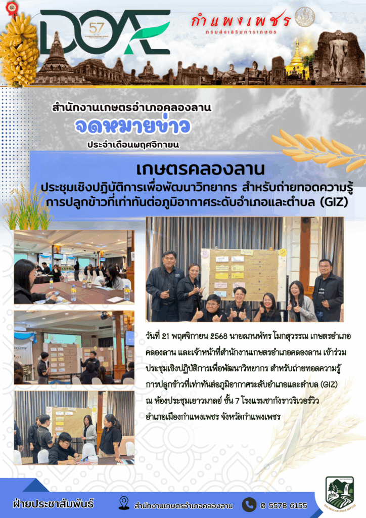 เกษตรคลองลาน: ประชุมเชิงปฏิบัติการเพื่อพัฒนาวิทยากร สำหรับถ่ายทอดความรู้การปลูกข้าวที่เท่าทันต่อภูมิอากาศระดับอำเภอและตำบล (GIZ)By khlonglan / 18 ธันวาคม 2025