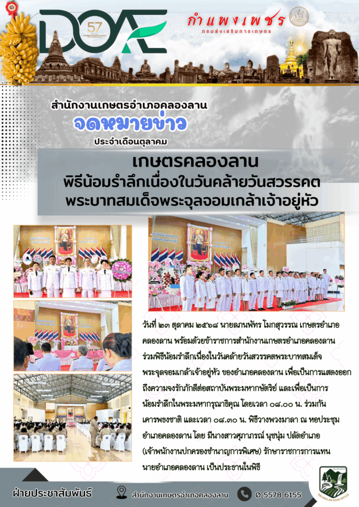 เกษตรคลองลาน: ร่วมพิธีน้อมรำลึกเนื่องในวันคล้ายวันสวรรคตพระบาทสมเด็จพระจุลจอมเกล้าเจ้าอยู่หัวBy khlonglan / 18 ธันวาคม 2025