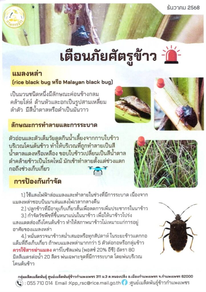 ข่าวประชาสัมพันธ์สำนักงานเกษตรอำเภอพรานกระต่าย ประชาสัมพันธ์การเตือนภัยการระบาดของศัตรูพืช (ข้าว) phrankratai / 19 ธันวาคม 2025
