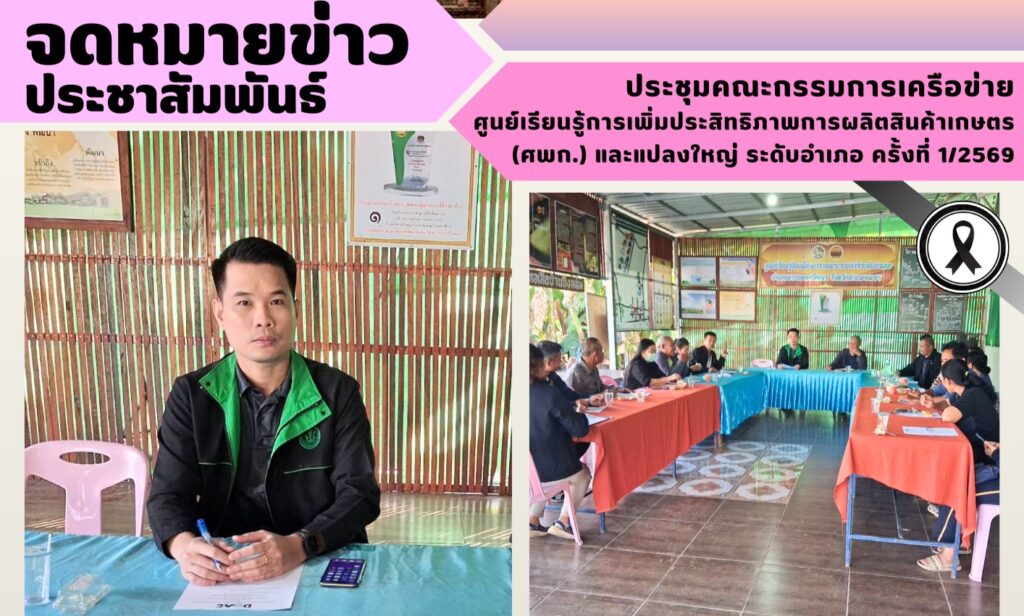 ข่าวประชาสัมพันธ์ประชุมคณะกรรมการเครือข่ายศูนย์เรียนรู้การเพิ่มประสิทธิภาพการผลิตสินค้าเกษตร (ศพก.) และแปลงใหญ่ ระดับอำเภอ ครั้งที่ 1/2569 saithongwatthana / 13 มกราคม 2026 วันที่ 13 มกราคม 256 […]